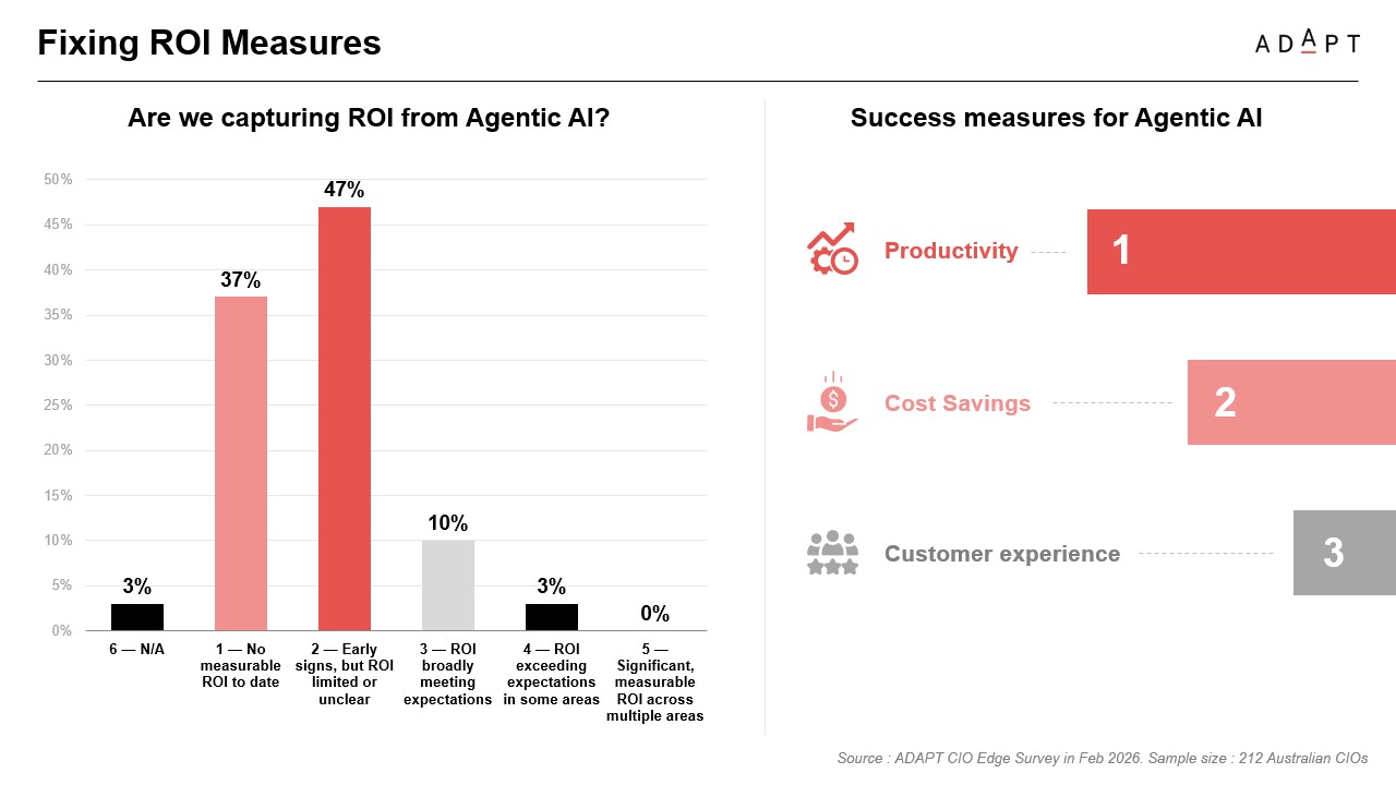 In this recent ADAPT Analyst Market Briefing, Gabby Fredkin, Head of Analytics and Insights at ADAPT, unpacked what that shift looks like in practice, drawn from ADAPT’s CIO Edge survey of 176 respondents, representing 25% of Australia’s A$1.9t GDP and 11% of the Australian workforce.
