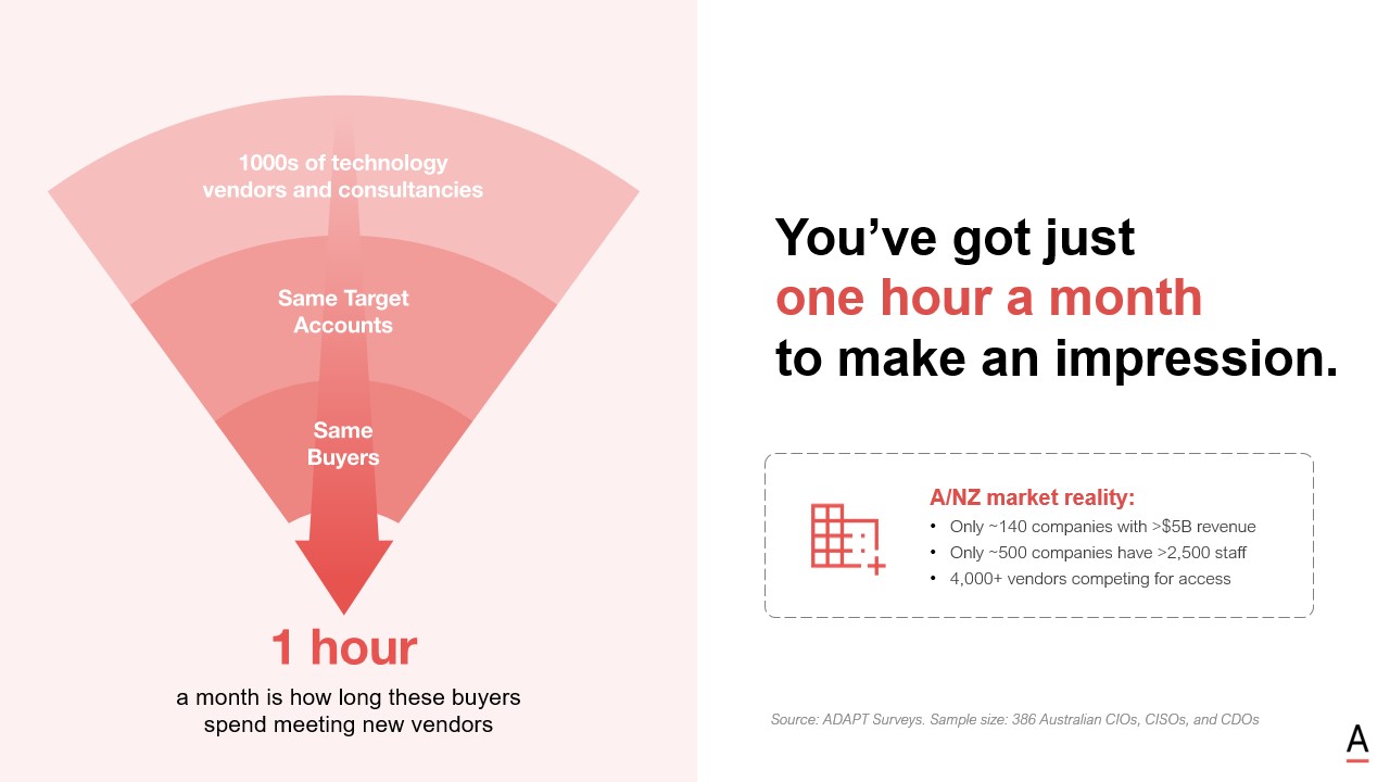 Buyers are spending just one hour a month meeting new vendors, which raises the bar on every conversation from the outset.