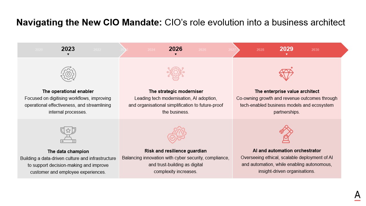 The new CIO mandate shows the role moving beyond operational enablement and into strategic modernisation, enterprise value creation, resilience, and AI orchestration across the business.