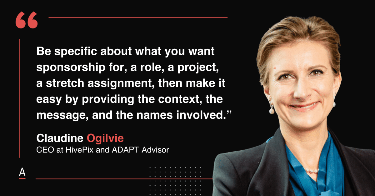 Claudine Ogilvie, CEO at HivePix and ADAPT Advisor, drew a hard line between mentoring that improves confidence, and sponsorship that changes outcomes.